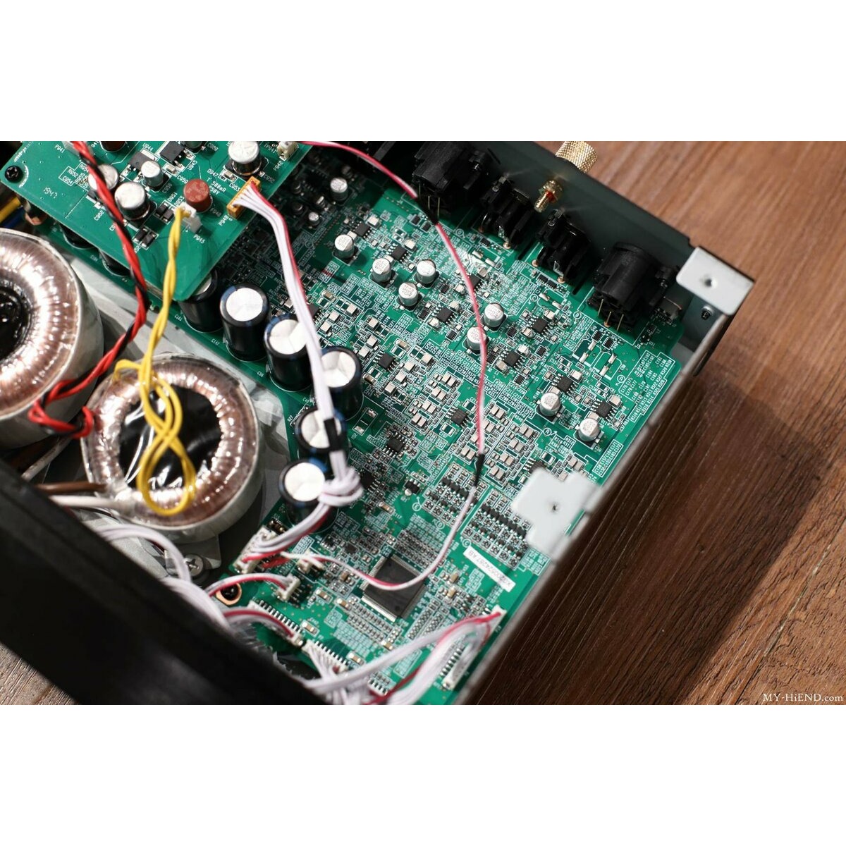 Фонокорректор Hi-End уровня. В фонокорректоре реализована уникальная индикация сопротивления картриджа с помощью стрелочной индикации на передней панели. Дополнительно стрелочная индикация может отображать ультранизкие частоты до 6 гц В зависимости от результата, отображаемого на счетчике, басовую составляющую можно отключить, включив при необходимости дозвуковой фильтр (24db oct).