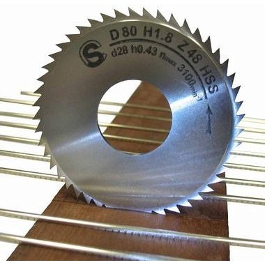 С помощью фрез пропиливаются пазы в накладке грифа, в которые затем устанавливаются лады. Пазы получаются ровными, без сколов, трещин и махры. Фрезы выпускаются для установки различных моделей ладов и имеют стандартные типоразмеры: