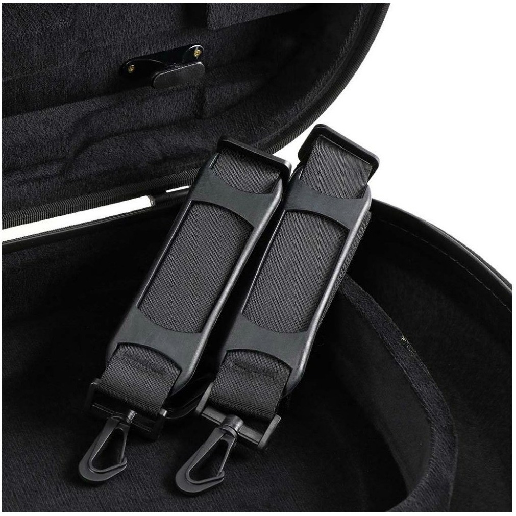 Кейс оснащен двумя отстегиваемыми заплечными ремнями и укрепленной ручкой для удобной переноски, двумя защелками, отделениями для мостика и других аксессуаров, а также держателями для двух смычков. Мягкая внутренняя обивка из 100% вельвета и слой пенного уплотнителя предотвратят появление царапин на корпусе инструмента и защитят его от повреждений, а внешняя тканевая отделка с водоотталкивающим покрытием не позволит влаге проникнуть внутрь кейса.
