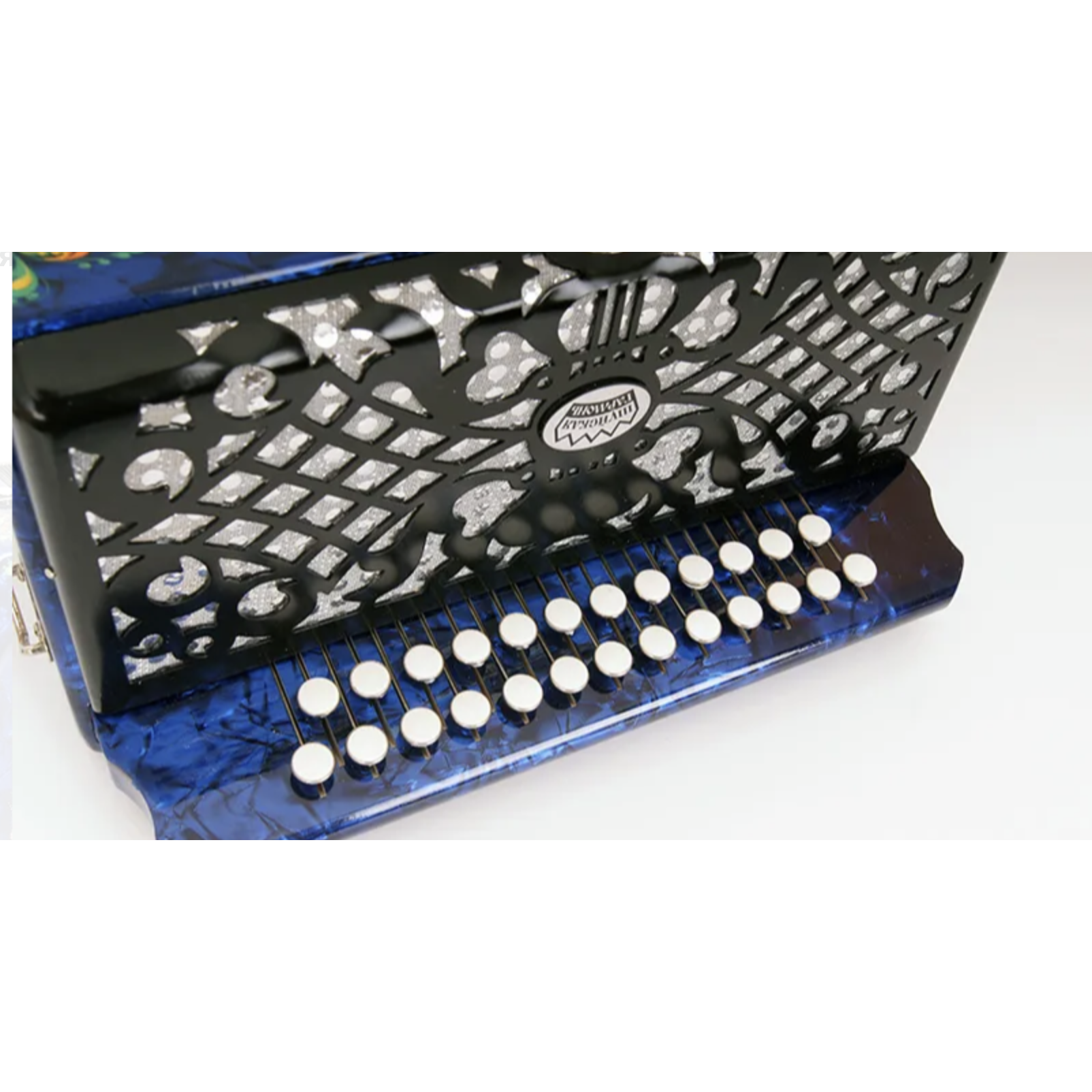 - левая — двухрядная, кнопочная (25 кнопок).