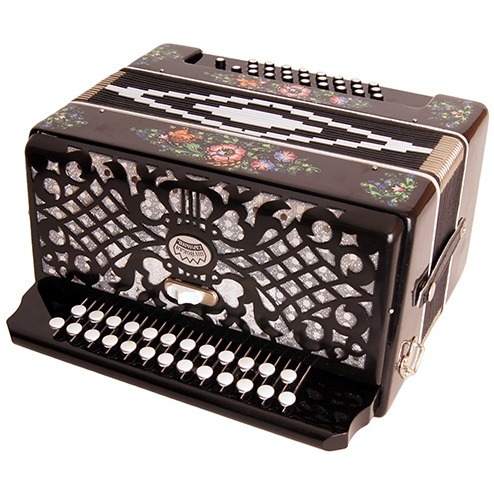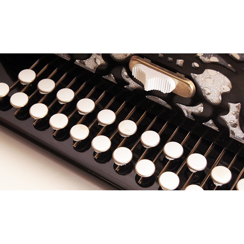 - Клавиатуры: правая– двухрядная, пуговичная (25 клавиш), левая– трехрядная, кнопочная (25 кнопок).