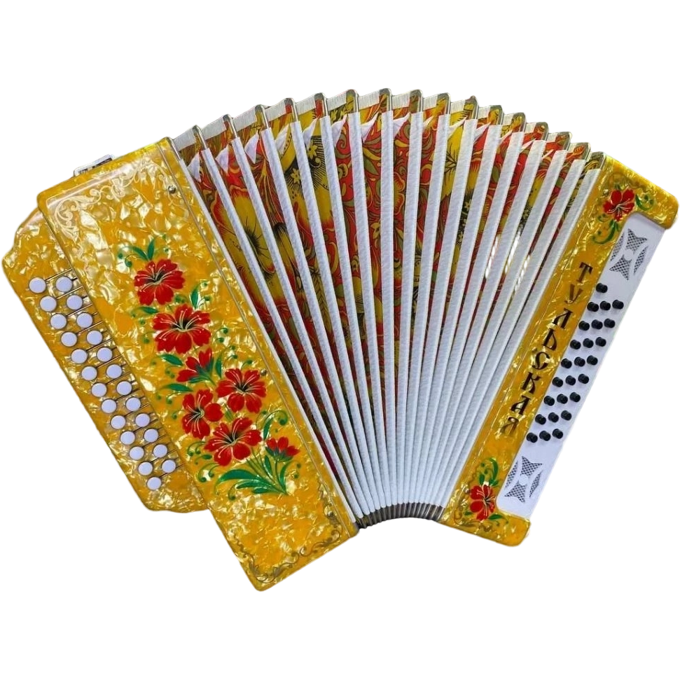 G-21-YW Гармонь Тульская-301М 25х25-III с двумя ремнями, жёлтая, Тульская гармонь
