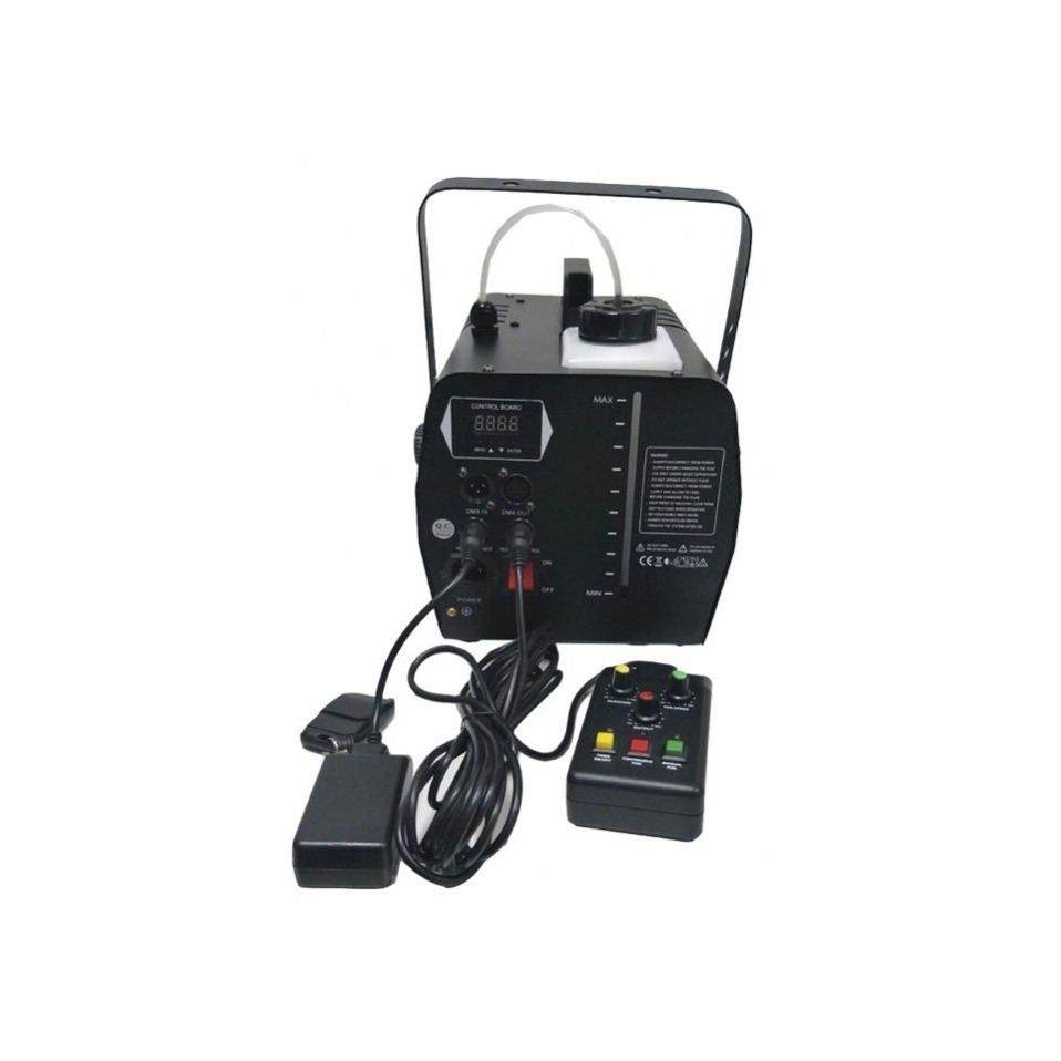 Компактный и производительный генератор тумана мощностью в 1000 Вт, способный вырабатывать 226 м³/мин при времени предварительного нагрева в 3 минуты. Генератор оборудован уникальной системой нагрева, позволяющей производить туман равномерно без перерывов. Он имеет возможность регулировки объема подаваемого тумана и регулировки скорости вращения вентилятора. Для избежания запаха гари устройство оборудовано точным контролем температуры. Также генератор может похвастаться низким потреблением жидкости и функцией отключения при опустошении бака для безопасности.