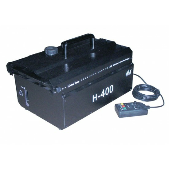 MLB H-400 - дисперсионный хейзер (генератор тумана) с возможностью контроля по протоколу DMX512 без нагревателя, с распыляющим взвесь из предназначенной специально для этой цели жидкости компрессором. Не требует разогрева и легко поддаётся регулировке интенсивности выхлопа. Присутствует таймер.