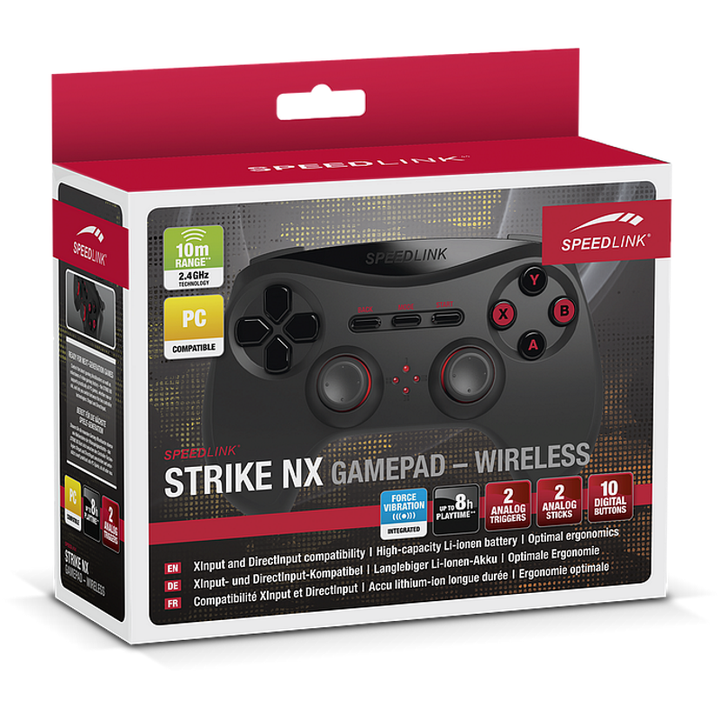 С помощью геймпада STRIKE NX вы сможете управлять как новейшими играми для Windows®, так и "классикой". Для этого вам потребуется всего одно нажатие кнопки для переключения между двумя режимами контроллера – XInput и DirectInput. Какую игру бы вы не выбрали - испытанная эргономичная форма, точные аналоговые стики, двенадцать кнопок и реалистичная виброотдача данного геймпада обеспечат максимальный уровень комфорта и непревзойденное удобство. Рабочая дистанция до 10 метров и встроенный аккумулятор большой емкости позволят надолго погрузиться в игровой процесс без необходимости задумываться о подзарядке геймпада и спутывании проводов.