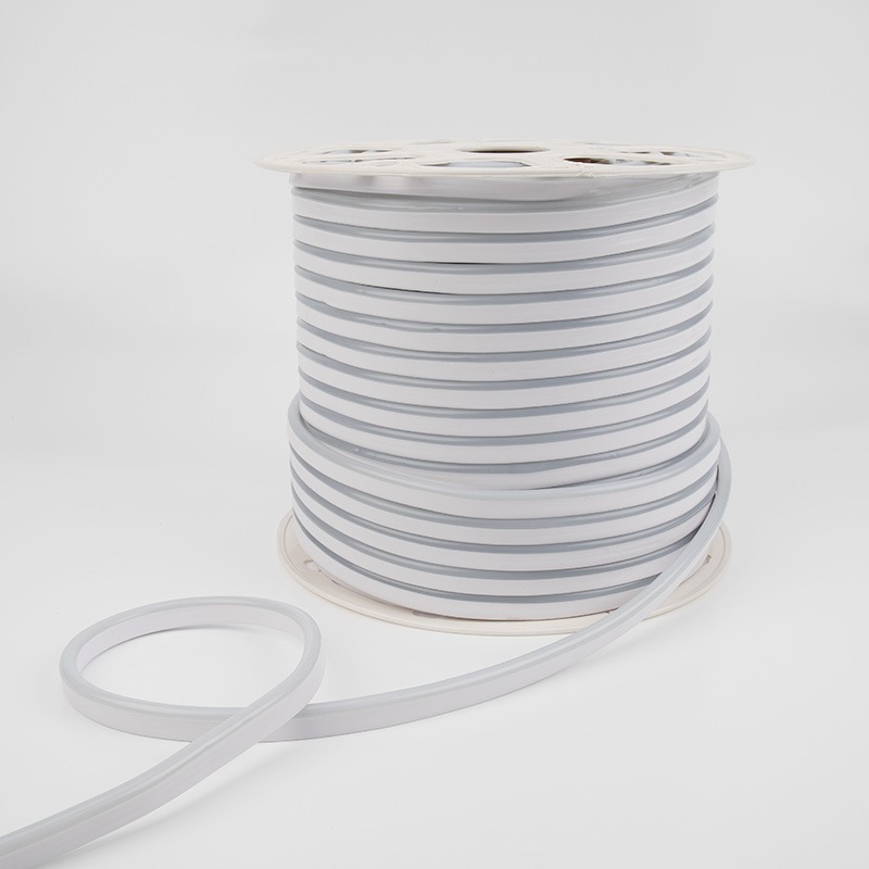 Гибкий неон - световой шнур выполненный из матовой белой ПВХ трубки с токопроводящими жилами и светодиодами внутри. Используется для декоративной и архитектурной подсветки объектов, так же широко распространён в украшении интерьера. Шнур имеет два токопроводящих провода внутри и используется в режиме постоянного свечения. Теплый белый гибкий неон 230В поставляется в бухтах длиной 100 м, имеет модуль резки 1 метр, следуя несложной инструкции легко можно отрезать и подключить гибкий неон нужной длины. Каждая бухта уже укомплектована комплектом подключения, максимальная подключаемая на 1 шнур длина 100 м. Дополнительные шнуры можно приобрести отдельно. При подключении гибкого неона к соединительному разъему (муфте) необходимо заизолировать свободное воздушное пространство соединительного разъема (муфты) морозостойким силиконовым герметиком, предотвращающим попадание влаги. Сверху данного соединения необходимо использовать термоусаживаемую трубку.