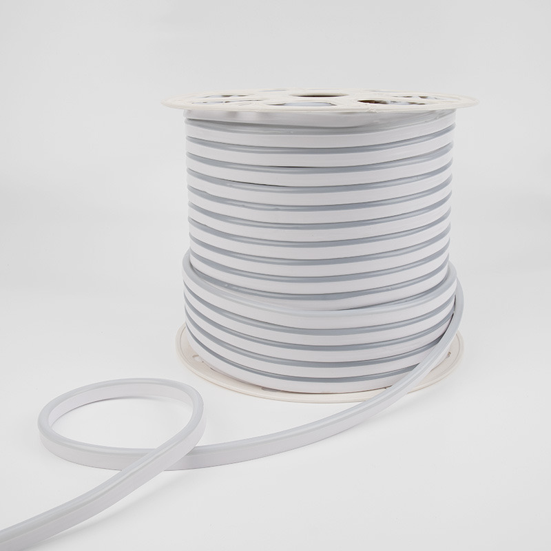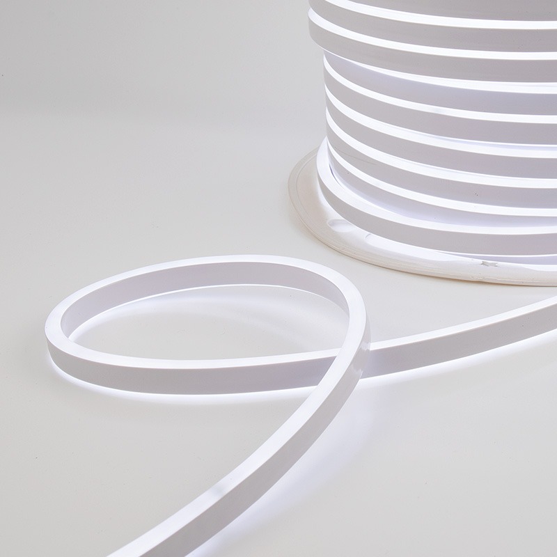 Гибкий неон – это световой шнур, выполненный из матовой полимерной трубки, наполненной ПВХ, со светодиодной лентой внутри. Используется для рекламной, декоративной и архитектурной подсветки различных объектов, зданий, сооружений, декорирования офисного или домашнего интерьера. Данный неон выполнен на SMD светодиодах SMD2835 белого цвета. Благодаря конструктивным особенностям данной модели: двухстороннему свечению, а также компактному размеру (8х16 мм), значительно расширяется спектр применения. При подключении гибкого неона к соединительному разъему (муфте) необходимо заизолировать свободное воздушное пространство соединительного разъема (муфты) морозостойким силиконовым герметиком, предотвращающим попадание влаги. Поверх данного соединения необходимо использовать термоусаживаемую трубку.