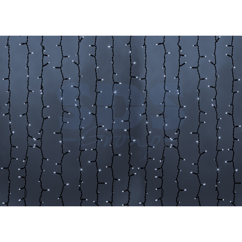 Гирлянда Светодиодный Дождь 2х1.5м постоянное свечение темно-зеленый провод 220В диоды БЕЛЫЕ 235-125 представляет собой гибкий горизонтальный шнур-шину (2м), к которому через определенные промежутки крепятся вертикальные нити (20 шт.) со светодиодными лампами, которые отличаются от «Бахромы» тем, что имеют одинаковую, достаточно значительную длину, часто превышающую протяженность шины. На концах каждой шины есть разъем и штепсель, которые предназначены для последовательного соединения нескольких световых дождей в большой занавес ПЛЕЙ-ЛАЙТ. Используя занавес, можно не только создавать красивые световые занавесы или оформлять различные плоскости, например, фасады домов, окна и т.д., но и украшать объемные объекты. Гирлянду, работающую в непрерывном свечении, называют фиксинг, а использующую режим светодинамики – чейзинг. Светодинамические эффекты становятся доступными только при подключении гирлянды к сети через специальный контроллер. Сегодня в гирляндах источником света служат светодиоды, которые пришли на смену применявшимся ранее лампам накаливания. С полупроводниковыми источниками гирлянда стала более надежной, потребляет меньше энергии, обрела более насыщенное сияние. Данная гирлянда имеет белый цвет свечения светодиодов.