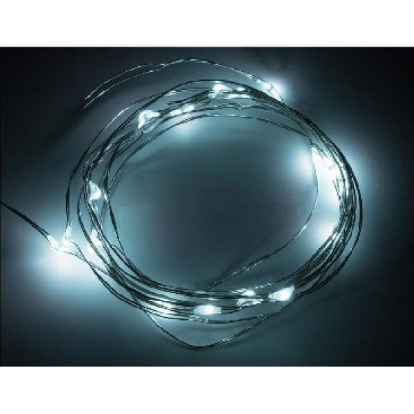 Светодиодная гирлянда-нить Neon-Night Роса 2 м, 20 диодов, цвет белый 303-005 - это отличный вариант для праздничного оформления внутри помещений, она хорошо дополнит предметы интерьера, растения и даже букеты цветов. Изделие представляет собой тонкий провод с последовательным расположением 20 светодиодов. Также есть батарейным блок, который крепится на дополнительный 30-сантиметровый провод. Для работы изделия необходимо 3 батарейки типа AA.