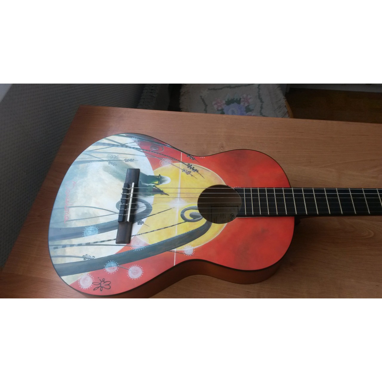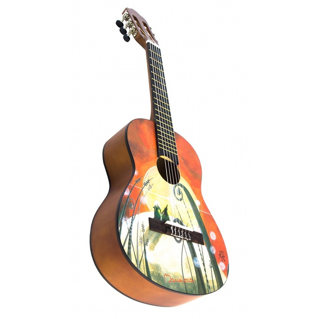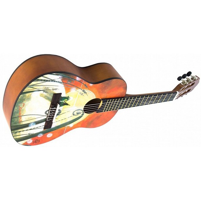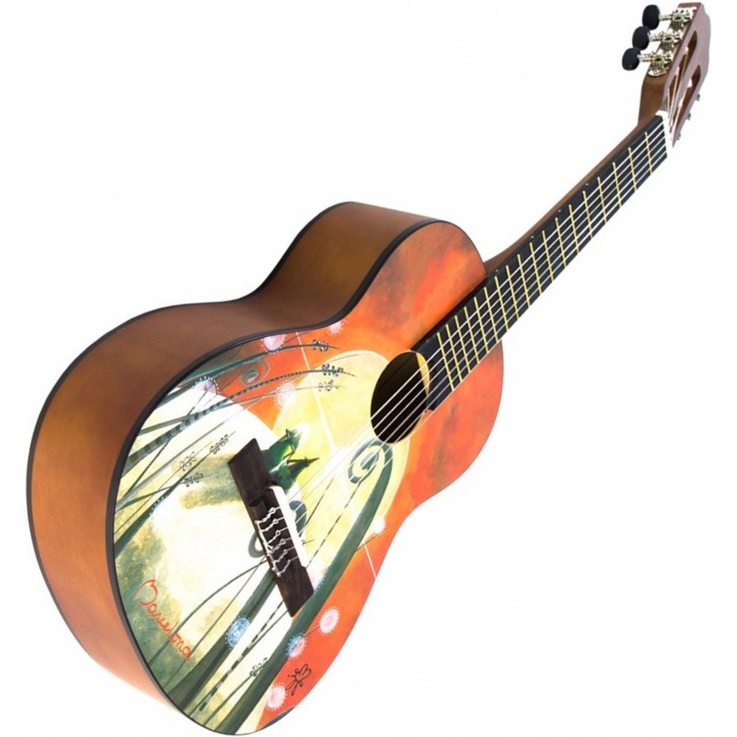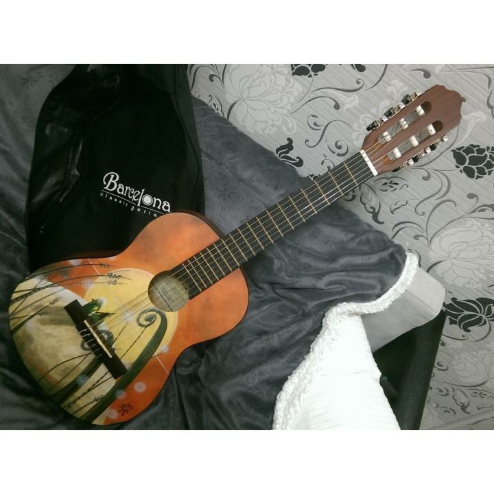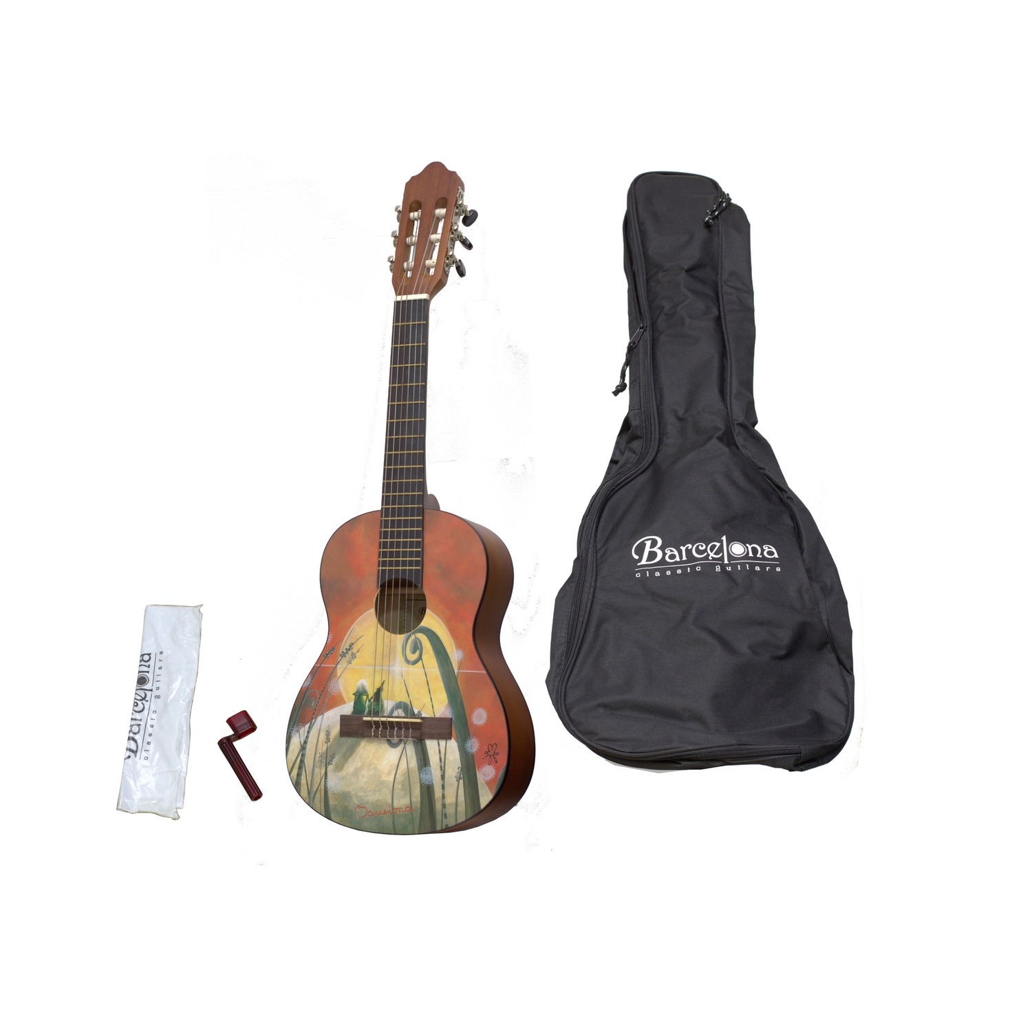 Barcelona CG10K/COLLINE 1/4 – классическая гитара, эргономично разработанная для молодых гитаристов. Этот превосходный набор обеспечивает отличным качеством по доступной цене и включает все необходимое для великолепного исполнения, а именно чехол для удобной переноски, машинку для намотки струн и салфетку для ухода за инструментом. Уменьшенный корпус сочетает в себе высококачественные материалы с высоким уровнем мастерства и всеми признаками полноразмерной классики. Верхняя и нижняя деки из липы вместе с накладкой из вяза на грифе из катальпы, а также нейлоновые струны прекрасно подходят для детских рук и пальцев. Несмотря на небольшие размеры, эта гитара выдает восхитительный звук, что делает ее лучшим инструментом, чтобы познакомить ребенка с миром отличных классических гитар. Яркий рисунок, нанесенный на верхнюю деку и нейлоновые мягкие струны, станут лучшим подарком вашему ребенку.