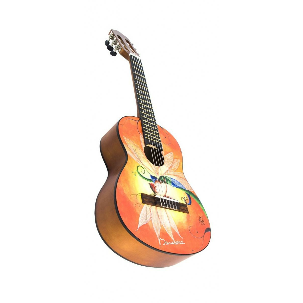 Barcelona CG10K/LUCIOLE 1/2 - яркая и забавная классическая гитара с превосходными характеристиками, звучанием и ценой, идеально подходящая для юных гитаристов. Она поставляется вместе с необходимыми аксессуарами, а именно чехлом для комфортного хождения на занятия, салфеткой для содержания инструмента в чистоте и машинкой для намотки струн. Корпус, изготовленный из липы, предоставляет теплый звук с выраженным основным тоном, а в совокупности с грифом из катальпы и накладкой из вяза, этот инструмент легкий и отзывчивый.