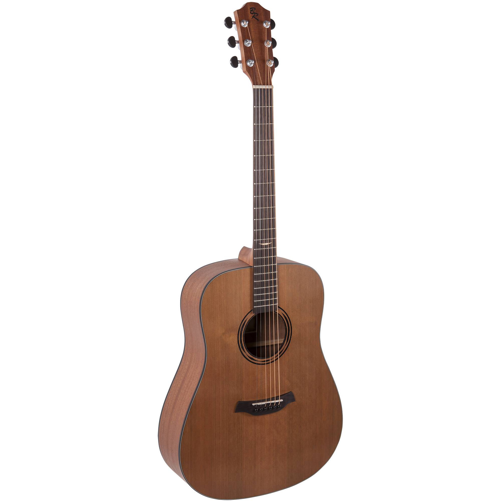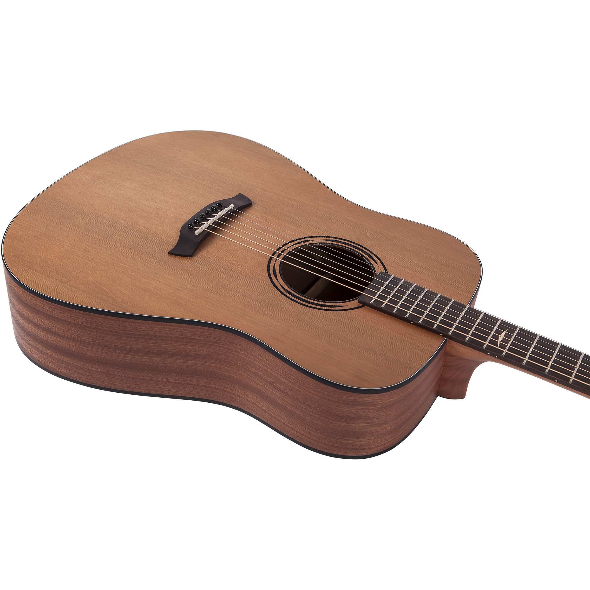 Леворукая гитара BATON ROUGE AR11C/D-LH имеет классический вид с натуральной отделкой и выполнена в корпусе типа Dreadnought без выреза. Топ выполнен из массива канадского кедра, нижняя же дека и обечайка – из красного дерева. Из красного дерева сделан и гриф, а его накладка – из ованкола, как и бридж.