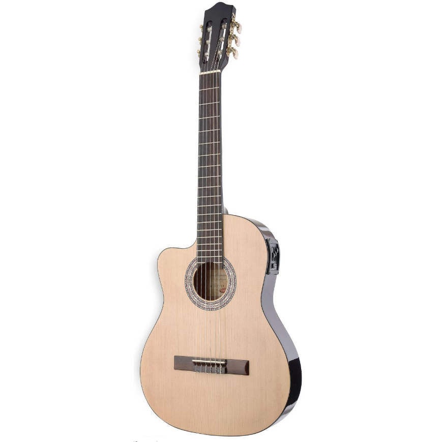 Stagg C546TCE-LH N - классическая левосторонняя электроакустическая гитара со встроенным пьезодатчиком, дека: ель, боковины, низ и гриф: catapla, форма: cutaway, цвет: натуральный. Это универсальный бюджетный инструмент для занятий, репетиций или концертных выступлений. Гитара оборудована встроенной системой подзвучки, благодаря которой, вы легко сможете подключить её к комбику или микшерному пульту без использования дополнительных микрофонов или звукоснимателей. Активный предусилитель позволяет регулировать тембр звучания, используя четырёхполосный эквалайзер, а встроенный тюнер поможет идеально точно настроить гитару. Корпус инструмента изготовлен из ели и катальпы и имеет вырез для доступа к верхним ладам.