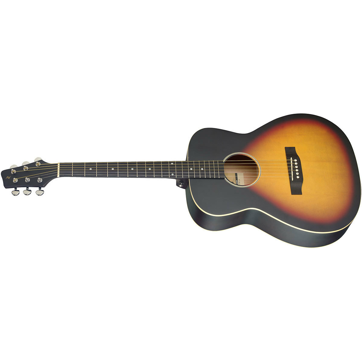 STAGG SA35 A-VS LH – шестиструнная леворукая акустическая гитара в корпусе типа Auditorium цвета санберст. Ее верхняя дека выполнена из липы, а вот нижняя дека и обечайки сделаны из экзотического дерева катальпа. Из него же выполнен и гриф, накладка на который сделана из синтетической древесины. Из такой же древесины создан и бридж.
