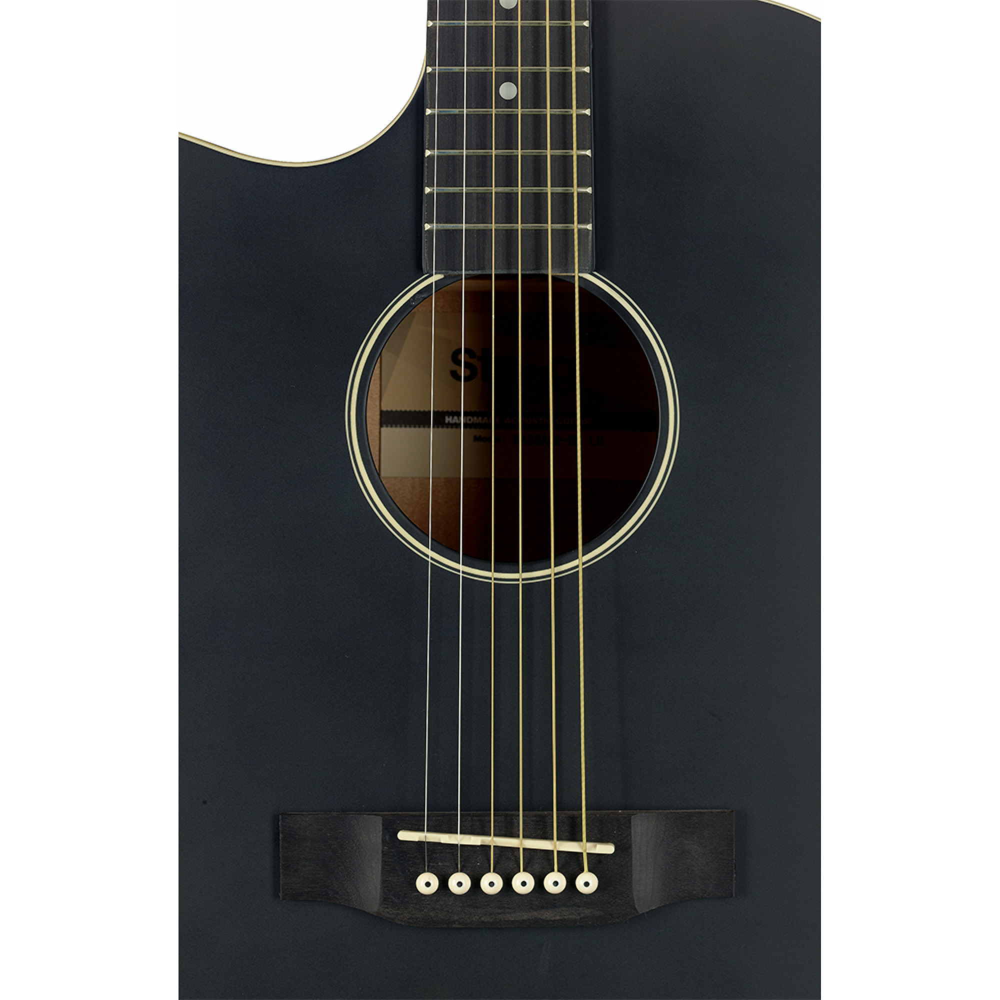STAGG SA35 ACE-BK LH – электроакустическая леворукая шестиструнная гитара в корпусе типа Auditorium с катавеем, улучшающим доступ к верхним ладам. Верхняя дека гитары выполнена из классической липы, нижняя дека и обечайки – из экзотического дерева катальпа. Из катальпы же сделан и гриф, накладка которого – из синтетической древесины. Из нее же выполнен бридж.
