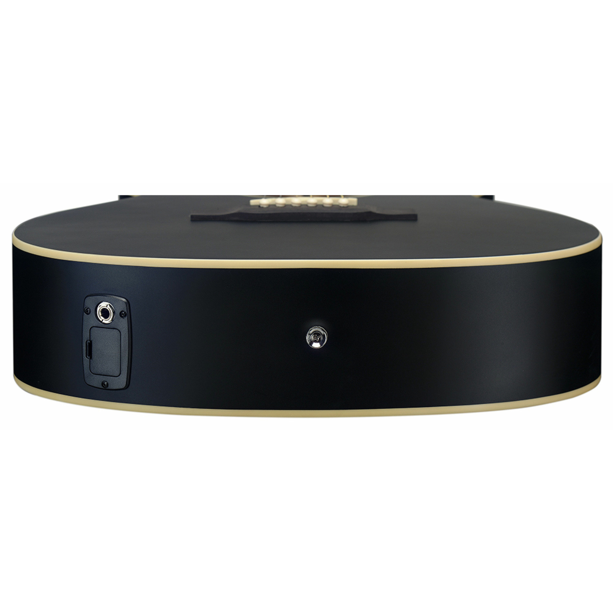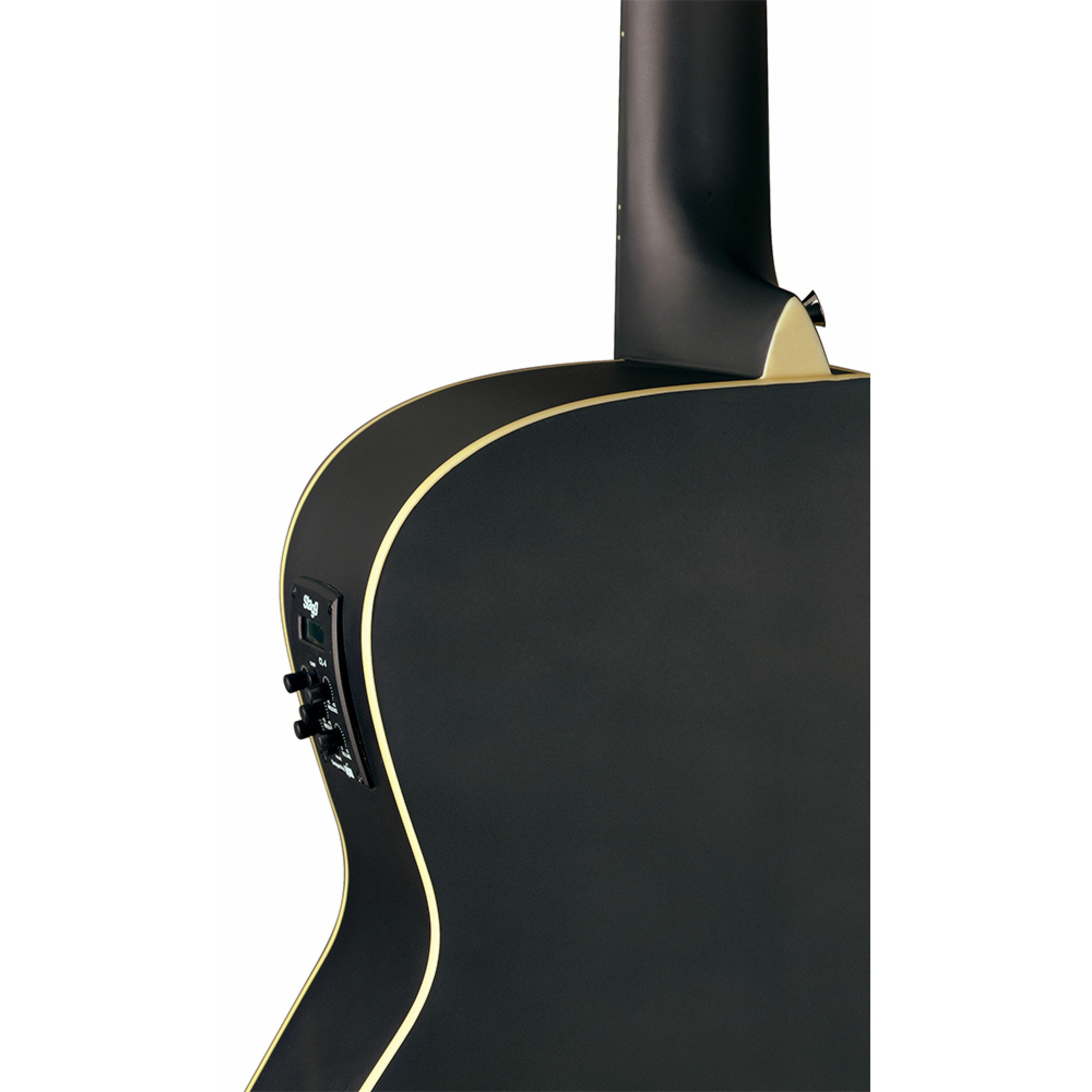 Порожки STAGG SA35 ACE-BK LH – с обычным углом. Кант верхней и нижней деки, а также грифа – белого цвета, что в сочетании с черной матовой отделкой выгодно подчеркивает дизайн гитары. Колковый механизм сделан литым никелевым. Наконец, изюминка гитары – её электроника с передатчиком B-Band. Встроены хроматический тюнер, регулятор громкости, регулятор эффекта присутствия, трехполосной эквалайзер и индикатор низкого заряда батареи. Присутствует выходной разъем на классическом 6.35 мм Jack.
