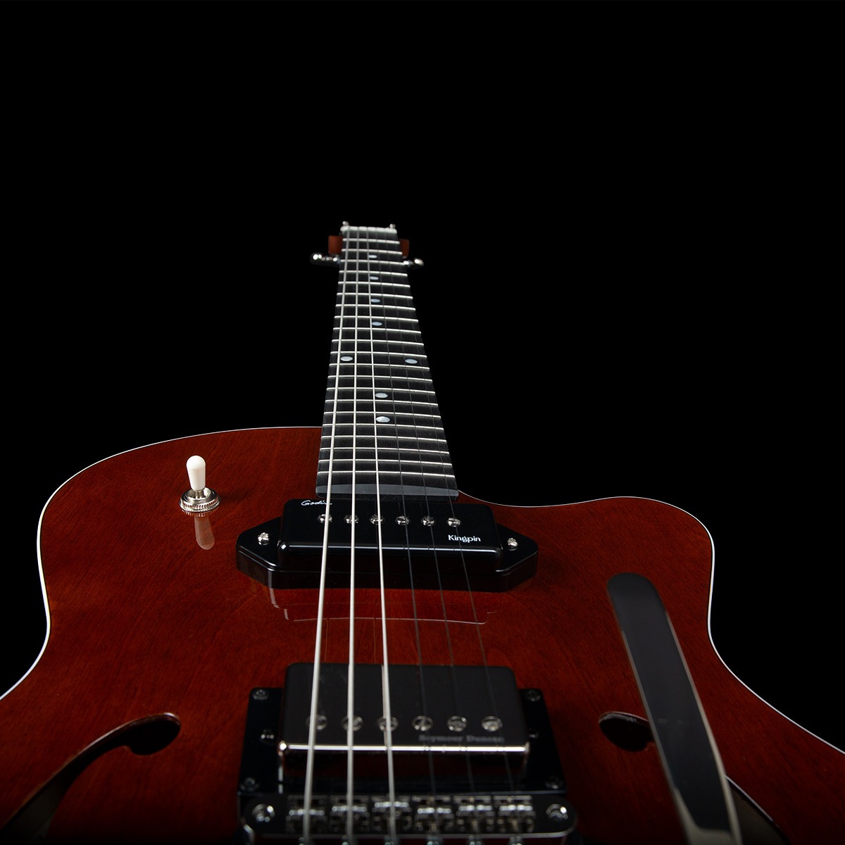 Уникальная конфигурация звукоснимателя Godin Kingpin P90 в нековой позиции и хамбакера Seymour Duncan ’59 у бриджа предлагает совершенно универсальную палитру звучания.