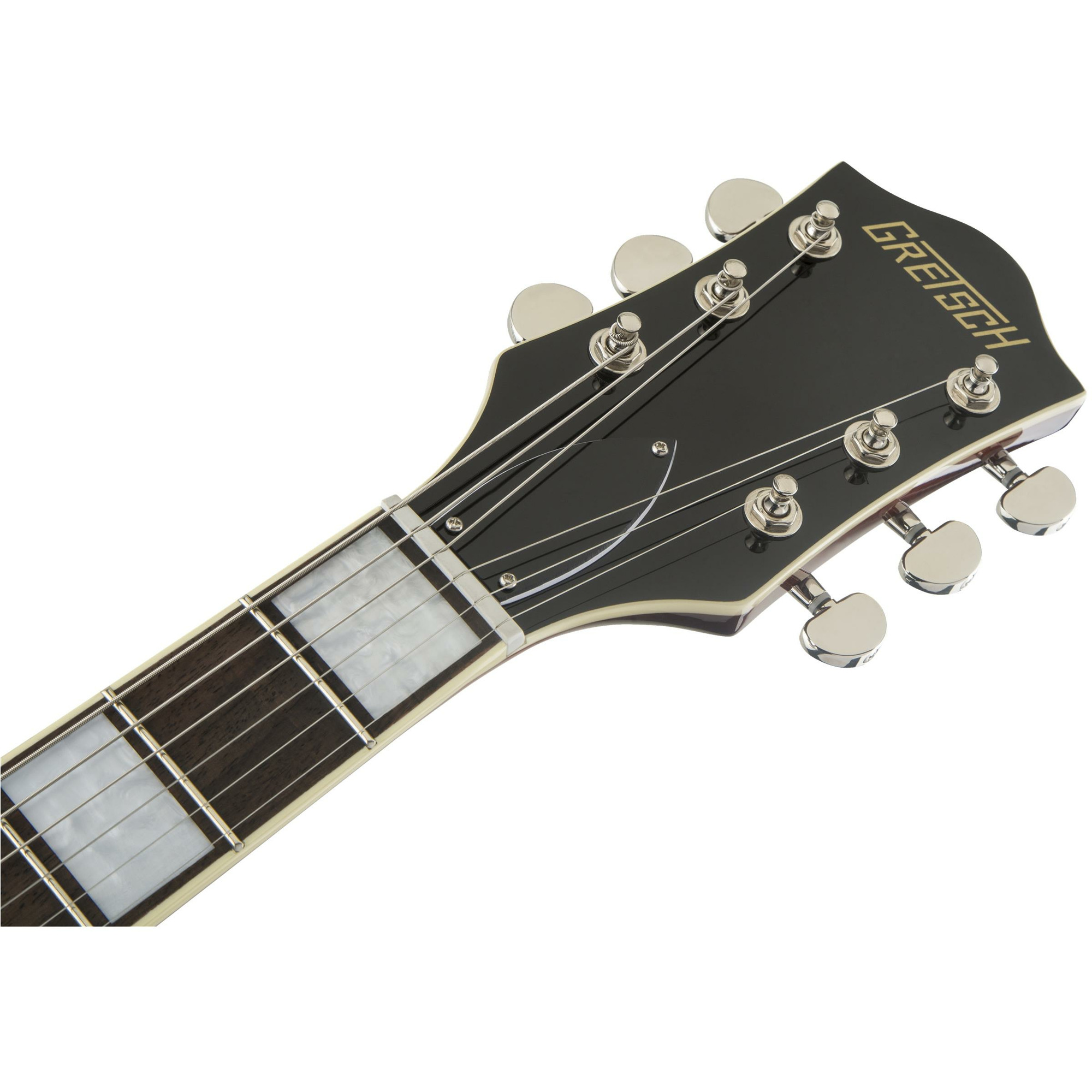 Эта электрогитара имеет оригинальное, узнаваемое звучание инструментов Gretsch, которое нельзя спутать с другими марками гитар. Также гитара отличительна оригинальным стилем деки и головы грифа. Инструмент оборудован грифом из красного дерева с накладкой из Laurel. Мензура электрогитары составляет 24.75" (628 мм), цвет гитары - сатин (Single Barrel Stain).