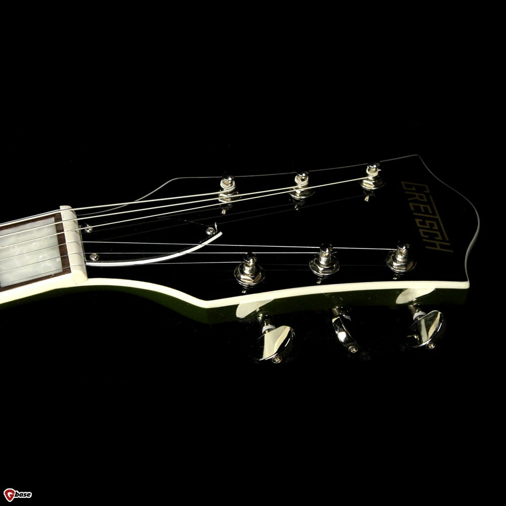 Стабильность строя обеспечивается Gretsch “V” stoptail струнодержателем, Ajusto-matic бриджем и порожком из синтетической кости. Стильный классический, привлекающий внимание вид придают гитаре винтажные черные ручки, эфы, элегантная двухслойная черно-белая окантовка корпуса, черный пикгард с логотипом Gretsch, блестящая никелированная фурнитура и арочная конструкция корпуса.