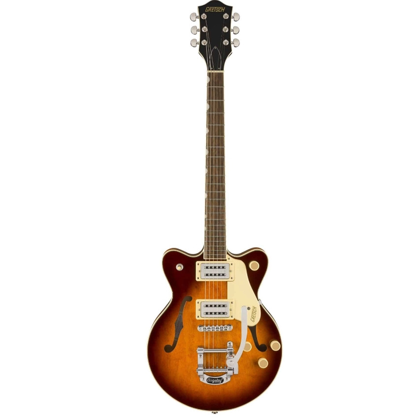 Модель G2655T Streamliner Center Block Jr. Double-Cut с Bigsby врывается в современную эпоху, предлагая мощный звук и стиль в компактном корпусе. Элегантная G2655T создана для гитариста, который требует от инструмента большего, чем просто производительность, стиль и, что самое главное, большую громкость, сохраняя при этом всё, что вы ожидаете от Gretsch.