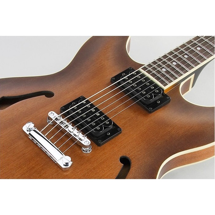 - Два экранированных датчика-хамбакера с переключением позиций снятия звука и регулировкой тона и громкости расширяют стилевой диапазон полуакустики – от джаза, кантри и легкого рока до рычания и детонации взрывного звука тяжелых стилей музыки.