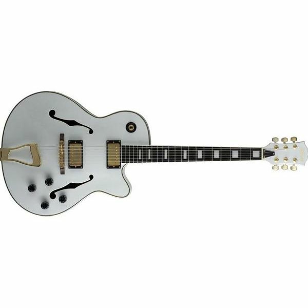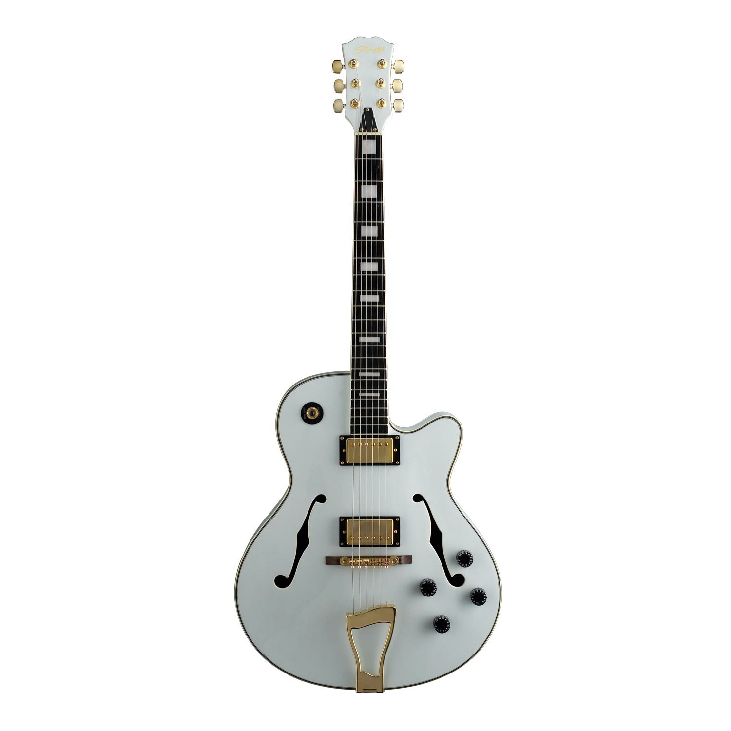 Stagg A300-WH полуакустическая гитара, имеет широкий полый корпус с характерными скрипичными эфами и вырезом для удобного доступа к верхним ладам. Инструмент выглядит дорого и благородно, при том, что относится к бюджетному классу. Звук здесь также выше всяких похвал – плотный, объёмный, густой, какой бывает только у полуакустических гитар. Корпус и гриф изготовлены из клёна. Начинка состоит из двух хамбакеров, двух ручек громкости, двух ручек тона и трёхпозиционного переключателя звукоснимателей. Такой инструмент отлично подойдёт для исполнения любых музыкальных жанров, кроме самых тяжёлых – на сильном перегрузе полый корпус будет сильно «заводиться».