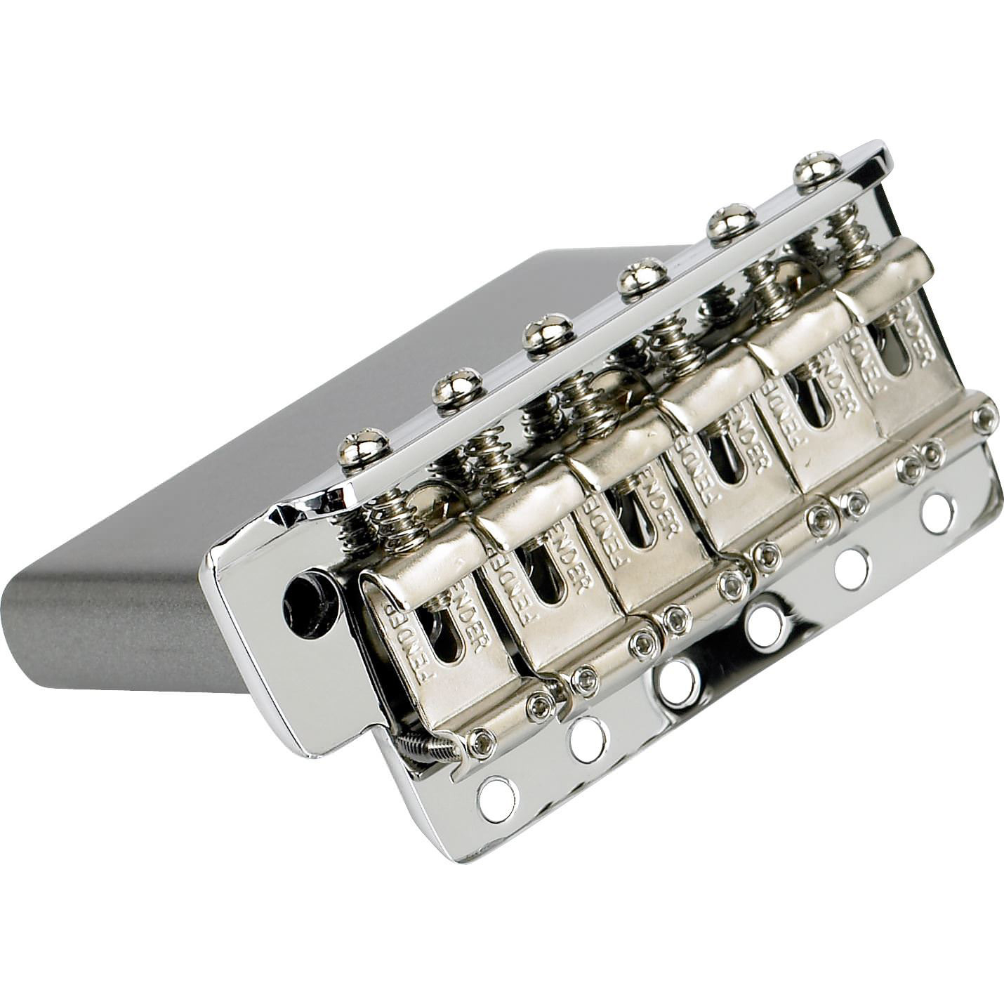 FENDER STD BRIDGE ASSY RH SGGB VTCRB - хромированный бридж в винтажном стиле для использования на большинстве моделей Standard, Deluxe, Roadhouse ™, Lone Star ™ и Blacktop Stratocaster, выпускаемых с 2006 г. по настоящее время. Включает в себя шесть изогнутых седел с штамповкой «Fender», винты и пружины интонации, а также винты регулировки высоты седла.