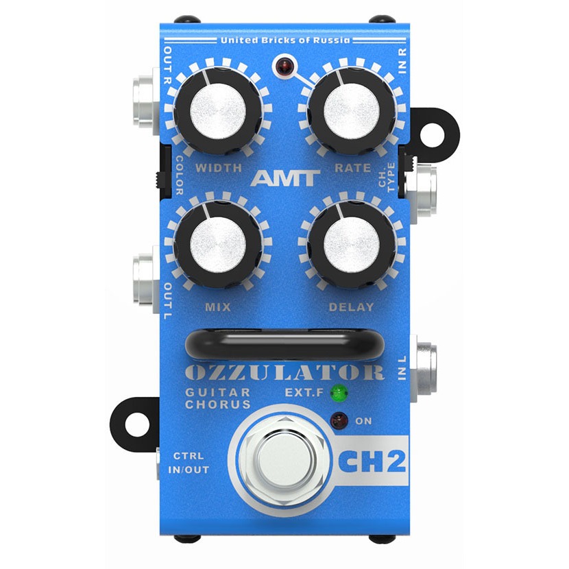 AMT OZZULATOR CH-2 - гитарный эфффект хорус, одинаково хорош и с электрогитарой и с бас-нитарой. Хорус - это эффект модуляции, имитирующий хоровое (многоголосое) звучание музыкальных инструментов. При использовании эффекта с гитарой, возникает иллюзия, что звучит не одна гитара, а несколько сразу. Эффект реализуется путём добавления к исходному сигналу его собственных копий, задержанных по времени на величины порядка 10-20 миллисекунд, причём, время сдвига непрерывно изменяется.