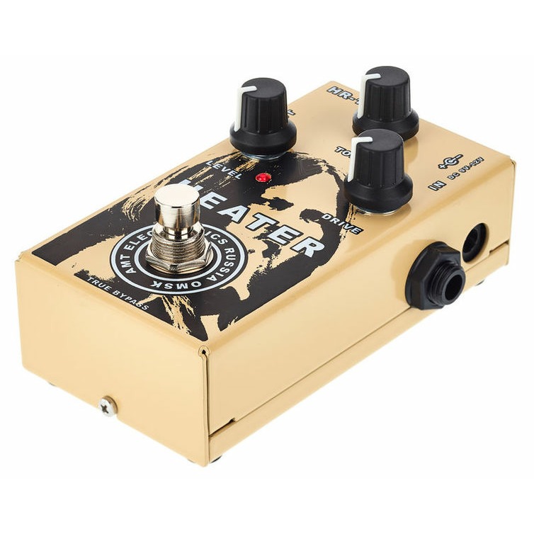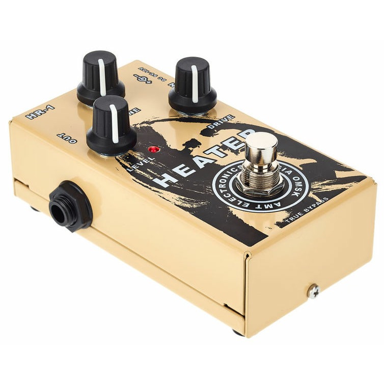 AMT Electronics Heater HR-1 - педаль эффекта Drive. Создана на основе JFET транзисторов и по задумке является разновидностью легендарной педали “Tube Screamer“. Схемное решение AMT Electronics HR-1 предусматривает "истинный обход" сигнала, так называемый True Bypass, что позволяет иметь некоторые относительные преимущества при коммутации педалей. При использовании подобного True Bypass сигнал проходит напрямую со «входа» на «выход» педали, не подвергаясь влиянию активных цепей. В некоторых случаях этот "истинный обход" имеет преимущества перед активным Bypass. Педаль имеет металлический корпус, окрашенный по современной порошковой технологии, что придает покрытию значительную прочность.