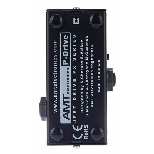 Эффекты серии Drive разработаны для подключения во вход «чистого» канала гитарных комбо и усилителей и предназначены для получения перегруженного звука гитары. Эффекты серии позволяют получить исполнителям теплый, естественный звук широкого спектра легендарных ламповых усилителей, максимально сохраняя индивидуальный звук Вашего инструмента. В серии Drive использованы новые оригинальные схемные решения, разработанные специалистами компании AMT, использующие эмуляцию перегруза ламповых каскадов и позволяющие получить при низковольтном (9В) питании и малом потреблении тока (менее 4мА) яркий и насыщенный звук в стиле оригинальных ламповых перегрузов.