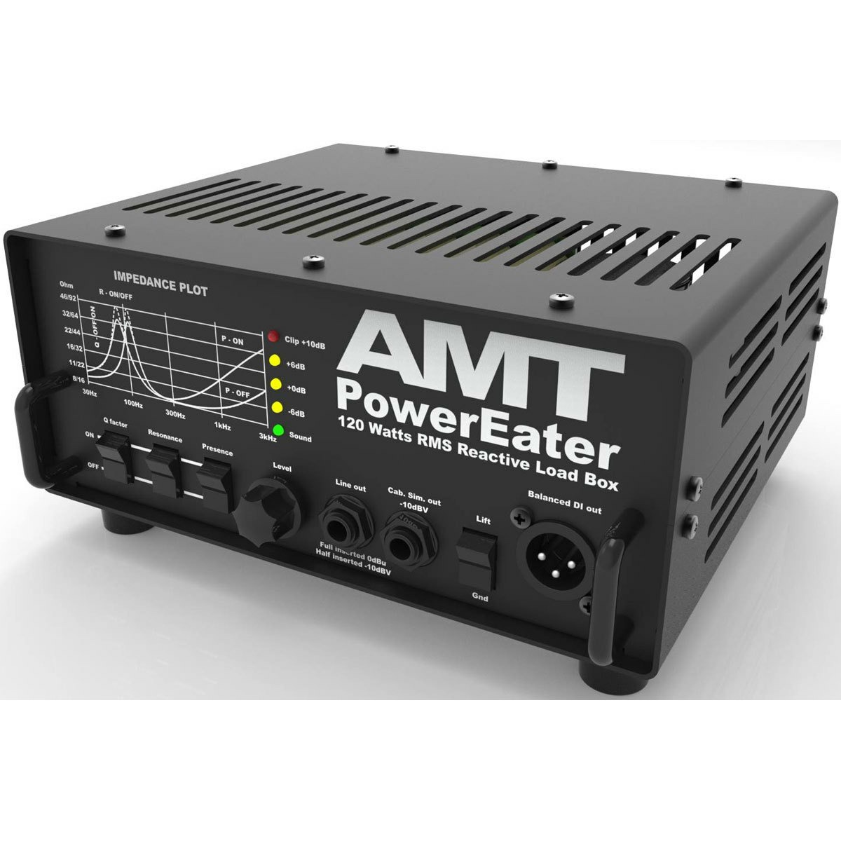 AMT electronics PE-120 - эмулятор реактивной нагрузки гитарного кабинета.Power Eater позволяет нагружать усилитель мощности эквивалентом реактивной нагрузки близким по электрическим параметрам к реальному динамику гитарного кабинета. Он может использоваться с ламповыми или транзисторными усилителями с выходной мощностью до 120 Ватт.