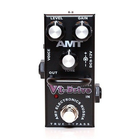 AMT Electronics VtD-2 Vt-Drive mini Гитарная педаль перегруза. Если вы являетесь поклонником своеобразного, утробно-рычащего, перегруза усилителей VHT – педаль Vt-Drive поможет вам добиться идентичного звучания. Специалисты компании АМТ постарались максимально полно передать характер и концепцию Lead-каналов культового лампового усилителя VHT. Гитарные эффекты Drive подключаются во вход «чистого» канала гитарных комбиков и усилителей и созданы для того, чтобы вы наслаждались перегруженным звуком гитары. Педали перегруза Drive позволяют гитаристам выдать звучание культовых ламповых усилителей, сохраняя, при этом, характерный звук инструмента. В серии Drive использованы новые оригинальные схемные решения, разработанные специалистами компании АМТ, использующие эмуляцию перегруза ламповых каскадов и позволяющие получить при низковольтном (9В) питании и малом потреблении тока (менее 4мА) яркий и насыщенный звук в стиле оригинальных ламповых перегрузов. Работая с гитарными эффектами серии Drive не забывайте, что звук, который вы ожидаете получить от гитары, зависит не только от самой педали, но и от того, какой усилитель или комбик вы подключили, а также – от марки гитары. В серии педалей Drive используется пассивный байпас, поэтому, выбирайте только высококачественные соединительные шнуры. С другой стороны, пассивный байпас не искажает звук инструмента при выключенной педали.