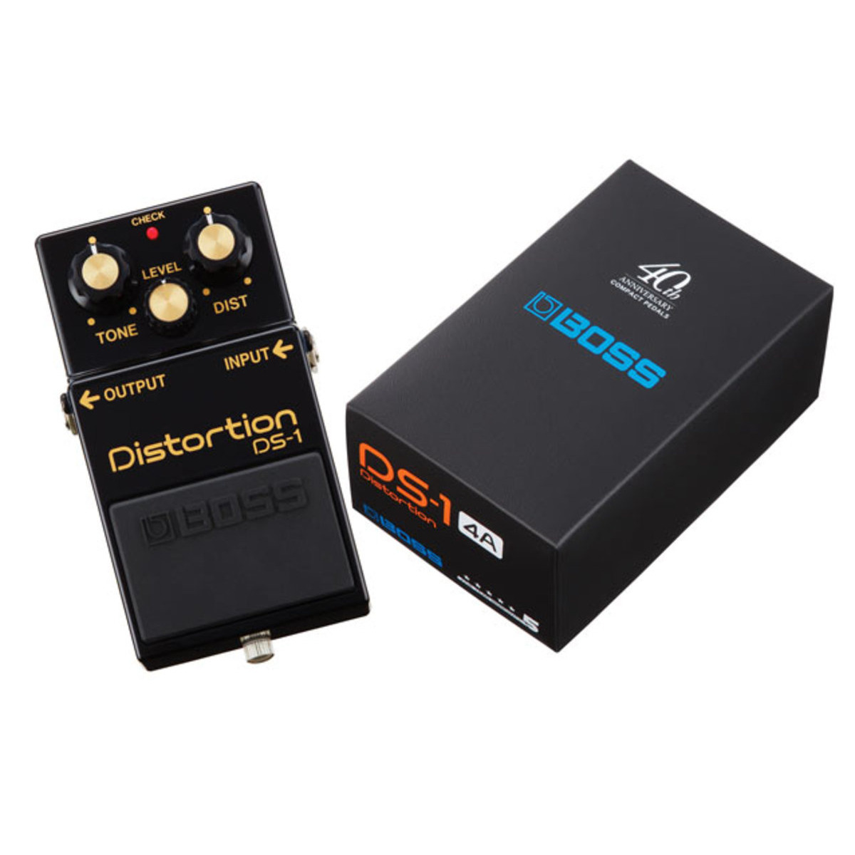 BOSS DS-1-4A – компактная гитарная педаль из линейки оборудования, представленной Boss в 2016 году в рамках празднования 40-летнего юбилея компании. Эта модель представляет из себя современное переиздание культовой модели DS Distortion, одной из самых популярных моделей, когда-либо выпускаемых Boss, производство которых было начато в 1978 году (вторая волна выпуска компактных гитарных педалей). DS-1-4A – уникальное переиздание педали, выпускаемое ограниченным тиражом. Модель стильно выглядит в черном корпусе с золотыми надписями, золотыми регуляторами. Батарейный отсек закрывается винтажным серебряным винтом. Элементы управления включают регуляторы Tone, Level и Dist. Педаль поставляется в специальной коробке с логотипом Boss 40th Anniversary и предлагается для покупки только в течение 2017 года. Электропитание осуществляется от батареи 9В (крона), срок непрерывной работы в зависимости от типа используемой батареи – от 50 до 80 часов. Также возможно питание от опционального сетевого адаптера серии PSA. Педаль можно легко разместить в педалборде. Модель заключена в прочный корпус.
