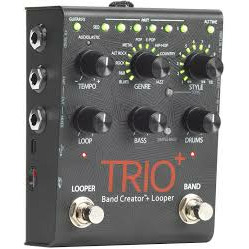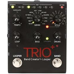 DIGITECH TRIO+ BAND CREATOR – простая и удобная в использовании гитарная педаль, которая «слушает» Вашу игру и автоматически генерирует басовые и барабанные партии, соответствующие исполняемому материалу. Для того, чтобы передать проигрываемые аккорды и ритм, достаточно подключить гитару к TRIO+ и нажать кнопку Band. Второе нажатие Band позволяет сразу начать играть с аккомпанементом. Громкость баса и барабанов настраивается при помощи регуляторов Bass и Drums. Можно выбрать один из трех типов басовых партий. TRIO+ также имеет функцию лупера, позволяя зациклить сыгранные гитарные партии и проигрывать их неограниченное количество раз, используя для сочинения собственных композиций. Партии гитары можно записывать отдельно или с аккомпанементом. Предусмотрена также возможность использования встроенных эффектов и подключения внешних эффектов, для этого имеются разъемы возврата/посыла. TRIO+ предлагает 12 разных музыкальных жанров с 12 стилями песен для каждого. Разноцветный светодиодный индикатор наглядно отображает, какой стиль лучше всего подходит для исполняемого Вами материала.
