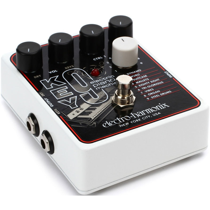 Суперэффекты B9 и C9 Organ Machines получили мощную поддержку в лице KEY9. Новая педаль Electro-harmonix эмулирует звучание культовых электрических пианино Rhodes, Wurlitzer и несколько других, всего 9. 9 пресетов, которые превратят вашу гитару в клавишные и позволят ей звучать как "Riders on the Storm" или "What I'd Say".