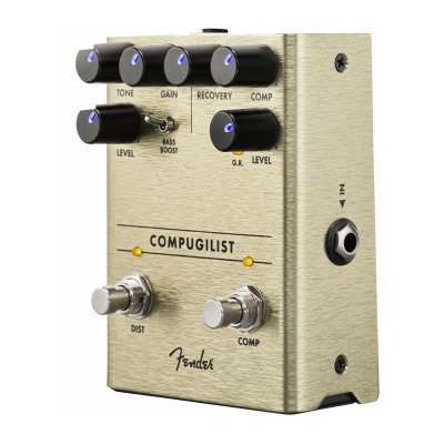 FENDER Compugilist Compressor/Distortion - Педаль эффектов для электрогитары, эффект компрессор/дисторшн, кнопки вкл/выкл для каждого эффекта, индикация регуляторов, питание от блока питания или от батареи 9В.