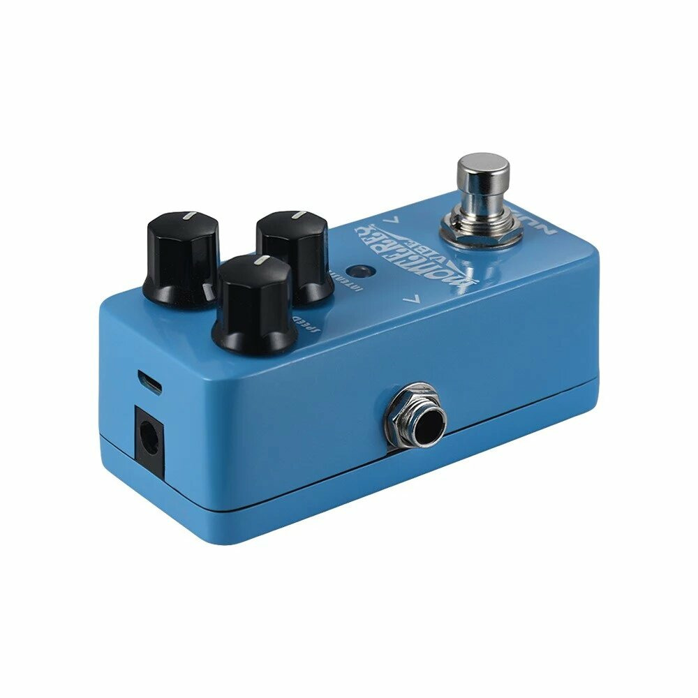 Nux NCH-1 Monterey Vibe Педаль эффекта. Педаль NUX Monterey Vibe призвана воссоздать всю сложность психоделического рока 1960-70-ых. Она может использоваться как эффект хорус, динамик Лесли или фазер. Вместо оригинальной схемы из пульсирующей лампы и 4 фоторезисторов, в педали используется мощный процессор обработки звукового сигнала 32-bit, позволяющий имитировать сложные физические явления в оригинальной аналоговой схеме. Педаль Monterey Vibe может имитировать уникальный эффект, представляющий собой смесь хоруса, тремоло, динамиков Лесли и фазера. Именно такое звучание вы можете услышать в композиции Pink Floyd “Breathe”, Robin Thrower “Bridge of sighs” и в “Machine Gun”Джими Хендрикса. Первая подобная педаль — Uni-Vibe, была разработана в 1960-ых годах, когда гитаристы пытались заменить ею тяжелый усилитель с вращающимся динамиком, стандартный усилитель электрооргана. С помощью этой педали гитаристы приобрели хороший фазер эффект. Также как и на традиционной Uni-Vibe педали, которая имеет эффекты хорус и тремоло, на педали Monterey Vibe вы можете переключаться между этими двумя режимами. В режиме chorus смесь сухого гитарного звука и фазера становится вращающейся. В режиме tremolo — периодически изменяется высота звучания.