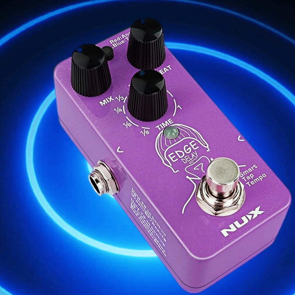 Гитарная педаль-эффект NUX NDD-3 Edge Delay, как можно догадаться из её названия вдохновлена творчеством гитариста Эджа, чей шарж изображён на поверхности устройства и ирландской группы U2 в целом, особенно композицией Where the Streets Have No Name. NUX NDD-3 – это дилей, в первую очередь нацеленный на создание слэпбэк-эффектов, создающих замысловатые мелодические паттерны и гармонические наложения, за счёт эхо-повторов, поэтому основное внимание органов управления уделено центральному регулятору