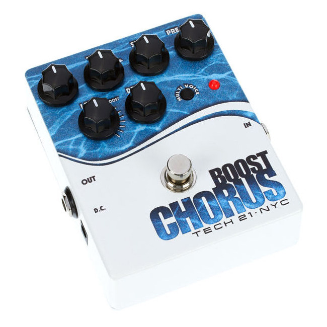 Tech 21 Boost Chorus - аналоговая гитарная педаль эффектов хорус. Эволюция эффекта хорус похоже застряла в поп музыке 80-х, вместе с пересыщенными обработкой гитарами, и низкопробными синтезаторами. Этот хорус не такой. При создании Boost Chorus мы обратились в 70-е, когда хорусы были богатыми, гладкими и яркими. Мы поняли, благодаря чему эти классические педали звучали так хорошо и использовали эти знания в новом типе хорус педали со значительно улучшенными характеристиками и целым спектром совершенно новых звучаний. Слепбэк, эхо, эффекты фленжера и дублирования возможны в педали Tech21 Boost Chorus. Созданная для гитары (и при этом звучащая прекрасно с любым другим инструментом) педаль Boost Chorus оснащена беспрецедентным набором функций. Шесть контроллеров на педали позволяют настроить тон, скрость и глубину эффекта. Регулятор Mix позволяет менять соотношение чистого и обработанного эффектов в пределах 0-100%, а Level – уровень усиления сигнала и компенсацию падения громкости за счет эффекта хоруса. Регулятор Pre-Delay изменяет диапазон хоруса для создания эффектов от фленжер/хорус, до обычного хоруса и хорус/даблер. Секретное оружие педали – кнопка Multi Voice. Включение ее создает несколько хорус голосов для получения эффекта ансамбля.