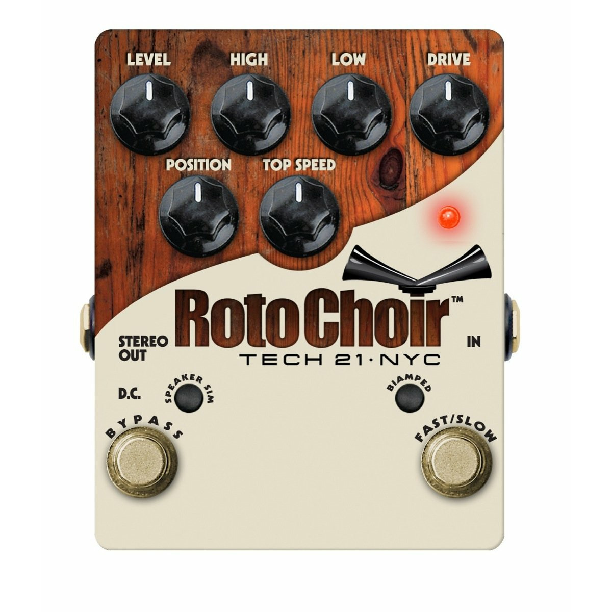 Ножной переключатель Fast/Slow позволяет ускорить, замедлить или даже остановить вращающийся динамик. Хотите варьироватьинтенсивность эффекта? Просто поверните регулятор Positon чтобы переместить виртуальный микрофон ROTO Choir ближе или дальше от рупора.