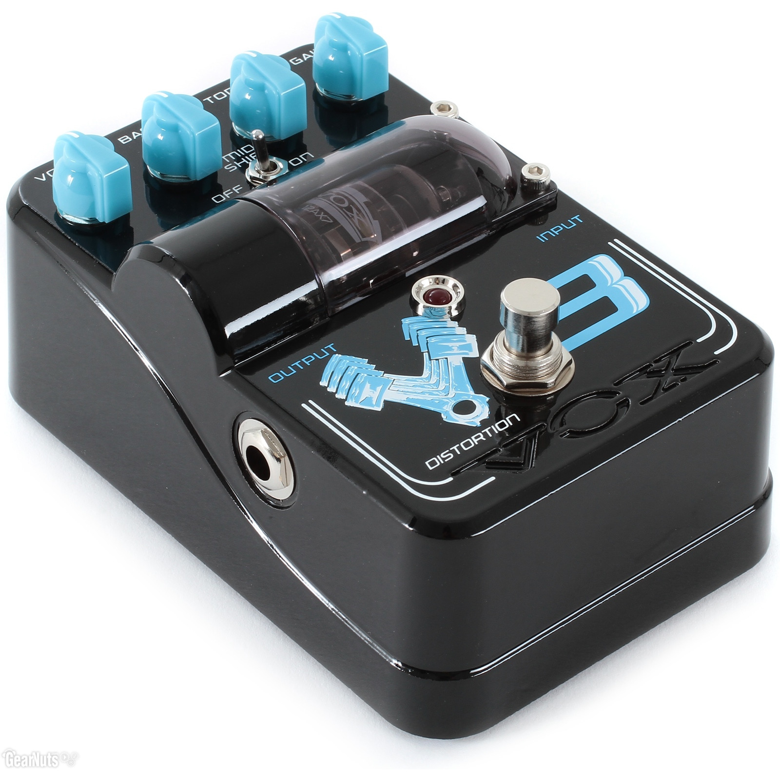 Hi-Volt технология позволяет вакуумной лампе работать под напряжением 200 вольт, хотя питание идет от батарейки. Эта технология поставляет высокое напряжение (200В) в 12АХ7 лампу, используя 6 х АА батареек или DC9V блок питания. Дискретная схема работает на 20В, что считается высоким рабочим напряжением по сравнению с другими педалями. В результате получается натуральный и динамичный тон, который присущ ламповым усилителям. Даже при том, что лампы считаются достаточно большим компонентом по современным меркам, инженеры Vox все же смогли сделать педаль маленькой, так что вы можете не опасаться, что педаль займет слишком много места в вашем педалборде. Схема усиления также прошла немало преобразований. Регулятор разработан так, что во время регулировки позиции не просто изменяется амплитуда, а и утонченно изменяется характер тона. Как только включается питание, ток проходит через лампу и для того чтобы увеличить срок службы лампы в педаль установлена схема медленного старта, которая также предотвращает сбои в работе блока питания.