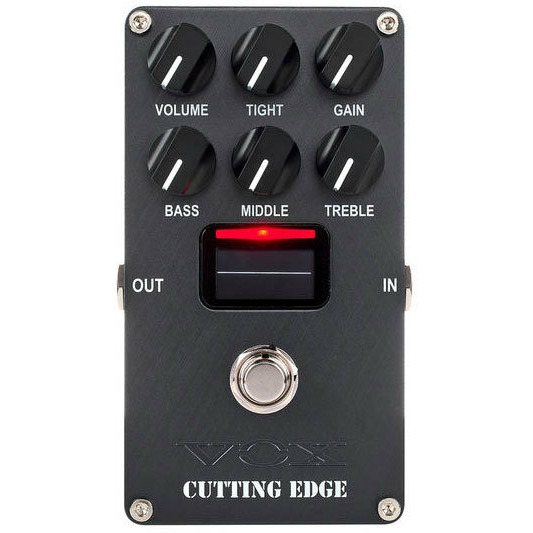Педаль эффектов VOX CUTTING EDGE предоставляет звучание с высоким уровнем гейна, необходимым для современного метала. Она оснащена 4 регуляторами тона, которые обеспечивают множество выразительных возможностей: от плотных и кранчевых тонов для чистых риффов до густых звуков, идеально подходящих для соло.