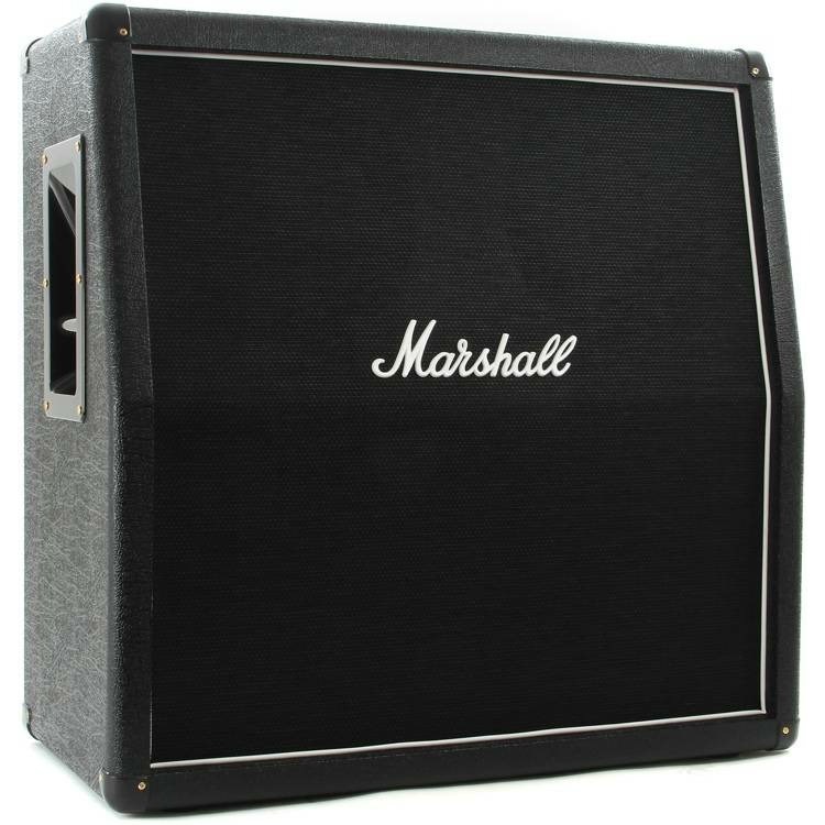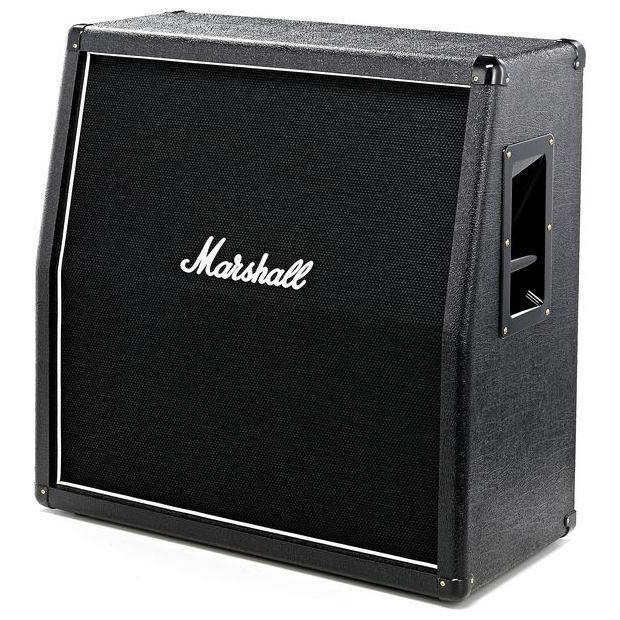 Кабинет произведен компанией Marshall (Англия). Этот производитель известен благодаря выпуску гитарных и бас-гитарных усилителей для профессиональной музыкальной сферы. Для передачи мощного и качественного звучания кабинет оборудован четырьмя большими динамиками Celestion G12E (4 x 12"). Эти динамики способны воспроизводить качественное звучание как чистого, так и подгруженного канала гитарного усилителя. Мощности гитарного кабинета вполне достаточно для репетиционных баз, небольших концертных залов и конечно же большой сцены.