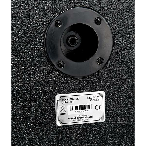 Номинальная мощность гитарного кабинета MX412A 4X12 составляет 240 Ватт (RMS) при нагрузке 16 Ом. Такой мощности достаточно, чтобы качественно озвучить практически любой музыкальный клуб и сцену. Компания Marshall пользуется большим уважением и популярностью среди профессиональных гитаристов и музыкантов всего мира. Звучание кабинетов и гитарных усилителей Marshall можно услышать на записях самых известных музыкантов. Серия гитарных кабинетов с динамиками Celestion G12E способна составить достойную конкуренцию многим известным производителям гитарной акустики, среди которых Engle и Mesa Boogie.