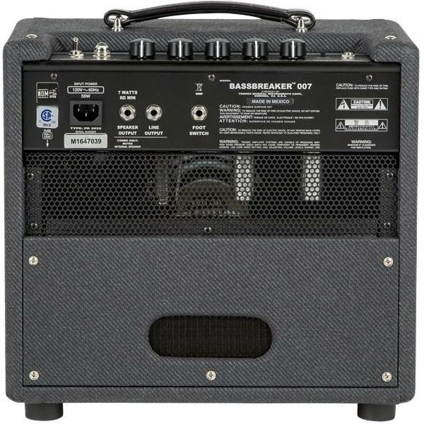 Мощный и неприхотливый, усилитель Bassbreaker 007 при своих скромных размерах обладает по-настоящему "большим" звуком. Предусилитель на основе двух вакуумных ламп 12AX7 и оконечный усилитель на одной лампе EL84 позволяют развить мощность 7 ватт усиления класса A. Bassbreaker 007 оборудован традиционными регуляторами чувствительности и тембра, которые дополняются привлекательной опцией — отключаемым бустером верхних частот, обеспечивающим более мощный перегруз с выраженными гармониками. При работе на максимальной чувствительности 007 звучит просто великолепно, не искажая динамики и собственного характера звучания вашей гитары. Встроенный линейный выход на разъеме "джек" 6.3 мм позволяет подключаться к звукозаписывающему оборудованию или дополнительному, более мощному усилителю. Неповторимость дизайна подчеркивается "блоковым" логотипом Fender, темно-серой лакированной твидовой отделкой, черной ручкой из искусственной кожи и большими удобными регуляторами.