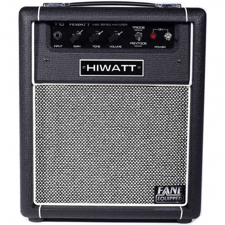 HIWATT T10 - малыш ламповой линейки Т, 5-ваттный комбо с динамиком 10". У Вас могут быть свои предположения, как громко могут звучать 5 ватт, но Вы можете и ошибаться - в данном случае это реально громко! В нем даже предусмотрен аттеньюатор для ограничения мощности наполовину. Будьте осторожны - он кусается. Одна 12AX7 гнездится в предусилителе, а выход снабжен одной EL84.