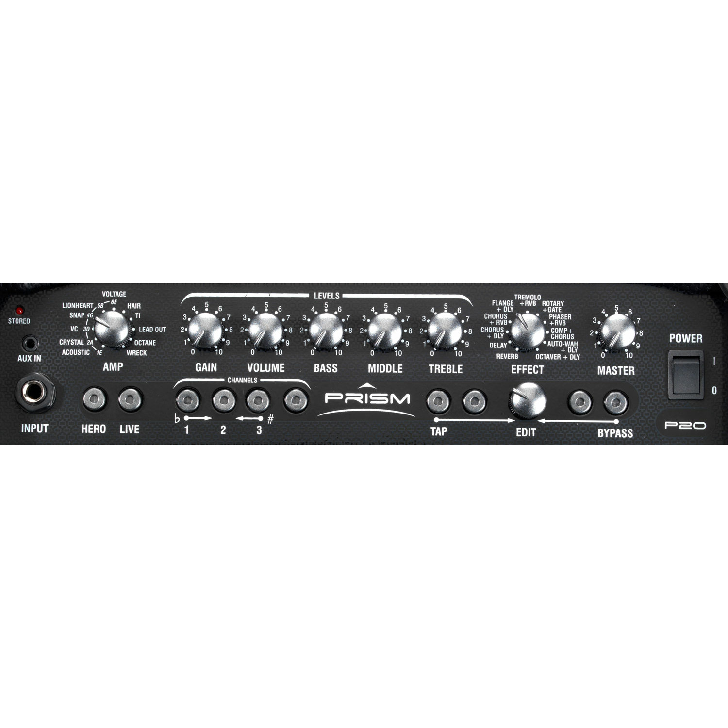 Laney PRISM20 - комбоусилитель для электрогитары с возможностью цифрового моделирования гитарных усилителей и встроенным процессором эффектов студийного качества. Имеется 2 режима работы – Hero и Live. В режиме Hero открывается доступ к 11 предустановленным настройкам, в которых заложена комбинация различных типов усилителей с эффектами, что дает широкий спектр звучания – от чистого до экстремально перегруженного. Режим Live предназначен для создания собственных настроек: 11 типов гитарных усилителей и 11 комбинаций классических редактируемых эффектов дают возможность сделать любое звучание – от классического до ультрасовременного.