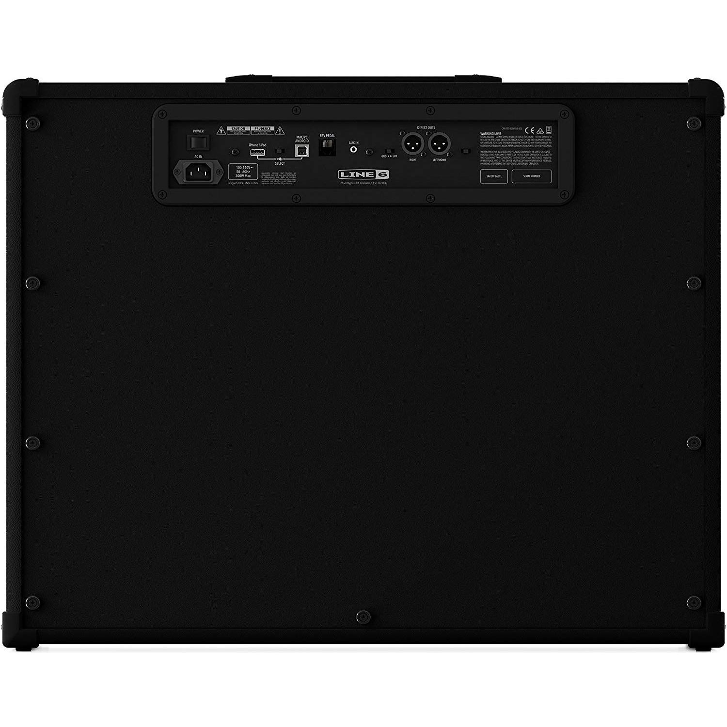 Динамики представлены двумя 12-дюймовыми широкополосными драйверами и двумя стандартными твитерами для ВЧ-диапазона. В сумме они могут превосходно озвучивать сигнал не только электрогитары, но и бас-гитар, электроакустик и клавишных, а также воспроизводить полноценные музыкальные композиции. Общая максимальная выходная мощность равняется 240 Вт, которых с лихвою хватит для студии или среднего концертного зала. Для домашних условий такой мощности может оказаться слишком много. Сверху динамиков имеется панель управления, на которой находятся пять регуляторов, функционирующих в режимах Amp и FX. Первый дает возможность настраивать громкость, уровень искажений и работу 3-полосного эквалайзера, а второй отвечает за параметры эффектов. Рядом располагается ЖК-дисплей с энкодером и несколькими кнопками, посредством которых осуществляется навигация по меню, выбор режимов звучания и смена пресетов. Вход для подключения инструмента выполнен на разъеме 1/4'' Jack TS, а выход для наушников, представленный разъемом 1/4'' Jack TRS, оборудован эмуляцией кабинета для наиболее комфортной игры и способен использоваться как линейный выход для записи и подзвучивания без микрофонов. Есть и стереофонический сквозной балансный выход, сделанный на двух 3-контактных разъемах XLR.