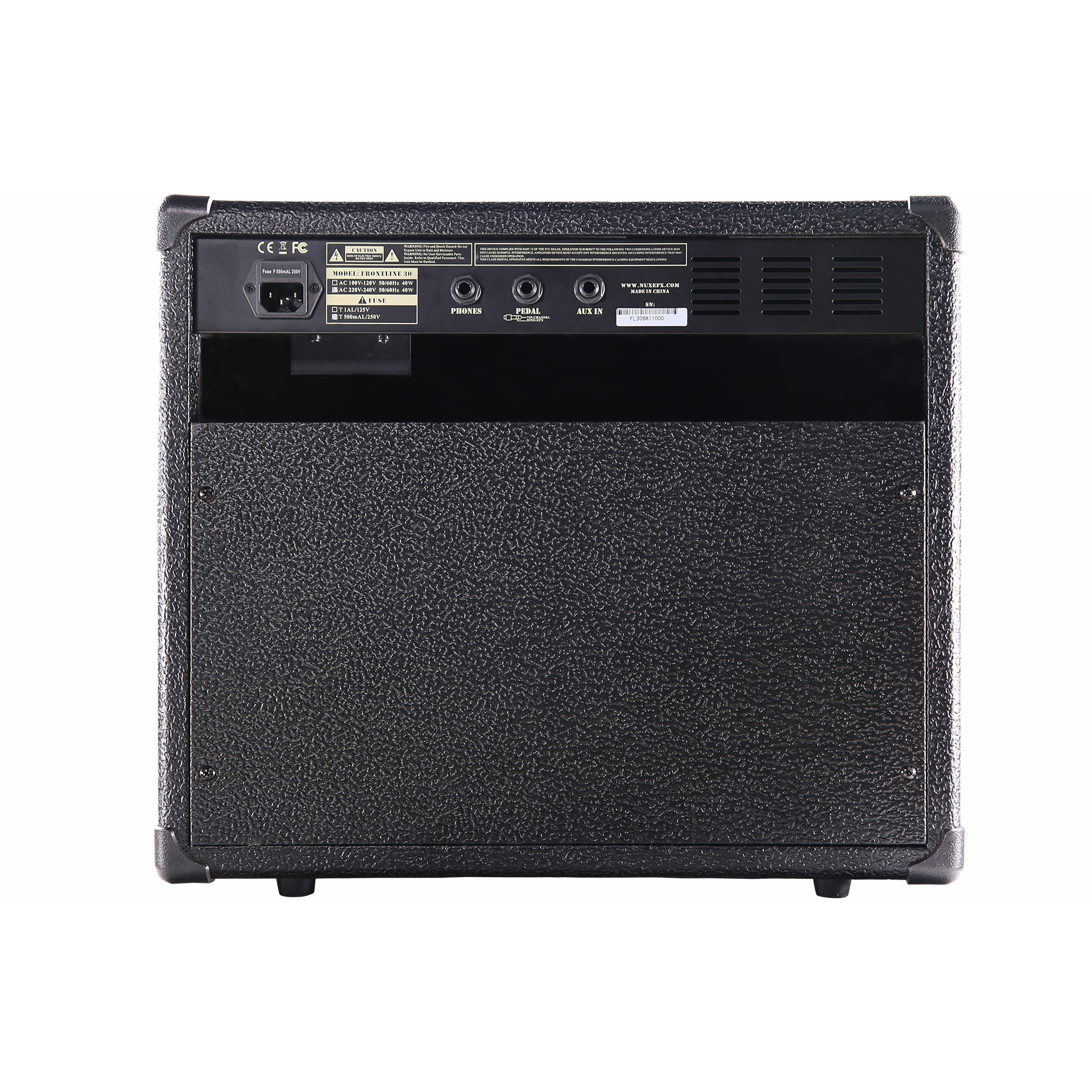 Также комбоусилитель оснащен 24-х битной цифровой обработкой улучшенного качества, с помощью которых вы сможете ощутить в полной мере пространственные эффекты и эффекты модуляции, такие как Chorus, Flanger, Echo, Delay и Reverb. Преключение эффектов можно реализовать и через внешнюю педаль (покупается отдельно). С помощью двухканального предусилителя Вы с легкостью и быстро можете менять тембр звучания. Также комбик Nux Frontline 30 оснащен тюнером для настройки гитары, что поможет Вам быстро подстроиться в нужный момент. Для любителей поиграться с обработками, канал DIST дает выбор из 6-ти различных эмуляций преампов: Boost, Blues, Crunch, Solo, Metal и Scoop. Усилитель оснащен входом для микрофона, AUX, вход для поключения педали и наушников, это очень удобно для репетиций дома и для игры на сцене.