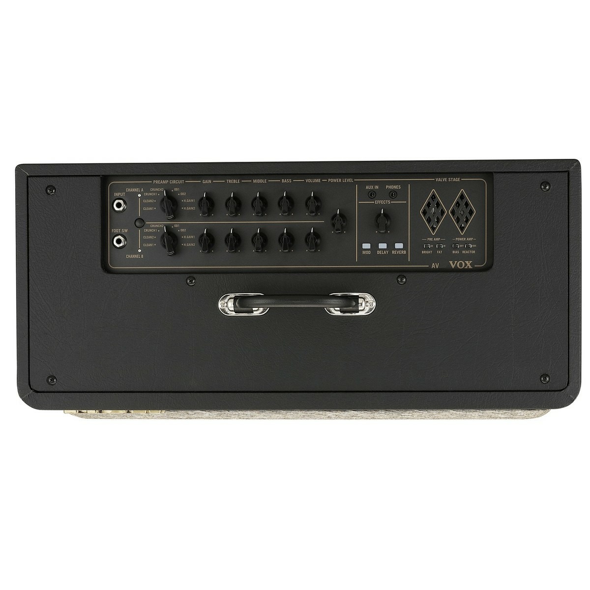 VOX AV30 - комбоусилитель для электрогитар предлагает 30 Вт мощности и работает на двух лампах 12AX7, по одной для преампа и усилителя. Известная британская компания Vox недавно представила миру новую линейку гитарных усилителей Analog Valve и модель Vox AV30является одной из её представителей. Большинство гитаристов прекрасно знают, что аналоговая схема в усилителе, особенно ламповом, предоставляет уникальное звучание. Большой неожиданностью является момент, когда вы находите качественный ламповый усилитель, который одновременно универсальный и доступный. Vox AV30 сочетает в себе все выше перечисленное и даже больше. Разработчики применили фирменные методы проектирования с использованием специальных деталей, чтобы создать превосходный, компактный 30-ваттный аналоговый усилитель с универсальным звучанием.